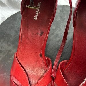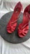 Women’s size 8 Red leather wedge Peep-Toe Sandals with ankle strap.