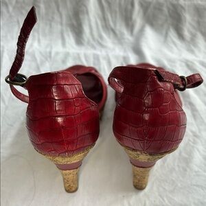 Women’s size 8 Red Leather Wedge Peep-Toe Sandals with ankle strap