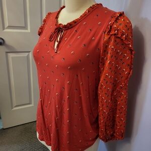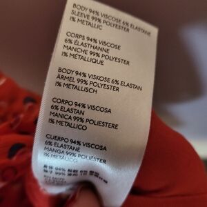 Red top with polka dot design. Great party top for Christmas and other occasions.