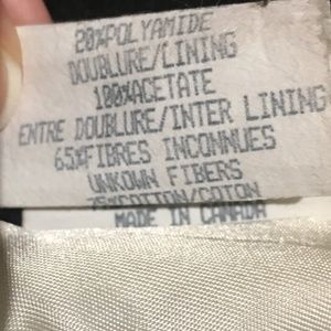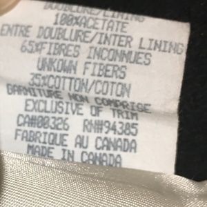 Outside material 80% wool,20% polyamide. Inside lining 100% acetate. Lining is 65% unknown, 35% cotton. Brand unknown. I'm the original owner.