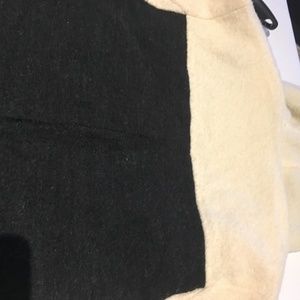 This coat was worn and so it shows. 2 of the 4 buttons fell off, but both are available. One will be in the pocket of the coat, and the other is sewn on the inside panel of the coat as per the pictures. The creamy arms show a little dirt & fuzzball. The back grey seam is intact but thin as per pic.