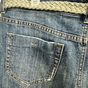 Women’s warehouse one distress denim mini skirt and leather/rope boho belt sz 10