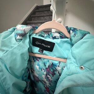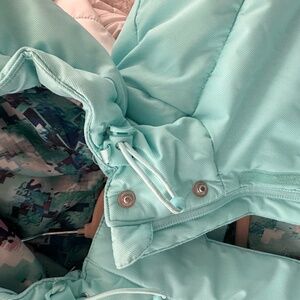 This turquoise winter jacket is in a good condition,very warm and comfortable. It has 4 pockets . Suitable for small size.