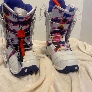 These older style snowboarding boots are in amazing condition! They're lightweight, very warm and comfortable. Some minor scuffs on the heels from the bindings but otherwise these are in excellent condition! With medium flex these are sure to help you shred the slopes whether a beginner or intermediate rider!