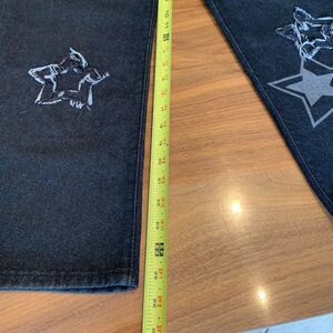 New with tags. Embellished jean in deep indigo wash with both painted on and cut out and textured stars. High rise, wide leg, from unknown manufacturer. Plse check photos for all measurements, fits more like a medium. Cute and on trend for unique street look, for fun, for you. Style it your way with additional pieces from Our Closet (some suggestions shown all listed and priced separately), build a bundle and save. From Lemon Squeezy Shop🍋