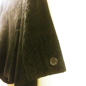 Black Unique Jacquard Textured Cotton Velvet with Faux fur removable button on Collar(It covers my butt and Im 5'9)