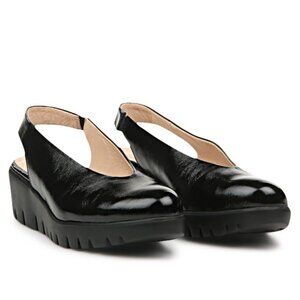 Wonders Black Patent Leather Slingback Wedge Size 40 (US 9.5-10)