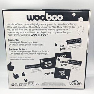 Dive into a world of witty opinions and clever observations with "Wooboo Woo Boo: A Game of Preconceptions" by OUTSET. Designed for ages 12 and up, this family game promises a delightful blend of strategy and humour, perfect for gatherings of 2 to 10 players. Whether it's a casual evening with friends or a spirited family game night, "Wooboo" is crafted to bring people together and provoke thoughtful conversation. With its roots in Canada and a year of manufacture dating back to 2018, this complete game set is a testament to quality and engaging gameplay. Players will find themselves creatively stretching their thinking as they attempt to outwit their opponents with their verbal skills. No custom or modified components here—just the pure, unadulterated fun of the original game, waiting to be enjoyed by both boys and girls alike.