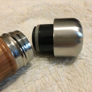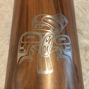 Very good preowned condition, insulated water bottle produced for Northwest Coast Gifts by S'well. One or two nicks, but otherwise in very good condition (kindly refer to images). Flask sports a sleek, seamless oak woodgrain and a silvery stylized eagle. In aboriginal mythology, eagles represent a symbol of pride and friendship. Likewise, their feathers are given to friends as display of respect and reverence. With its high quality stainless steel walls and screw seal, this flask is designed to keep 17 oz of liquid hot for up to 8 hours and cold for up to 24 hours.
