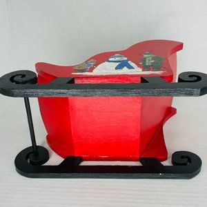 Wood Hand Painted Santa Sleigh Christmas Decor Table Plant Basket