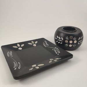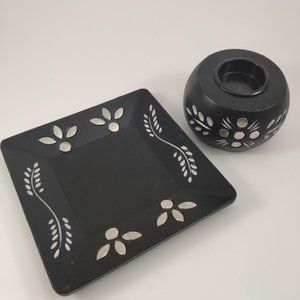 Wood Metal Inlay Trinket Tray Tealight Holder Set