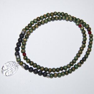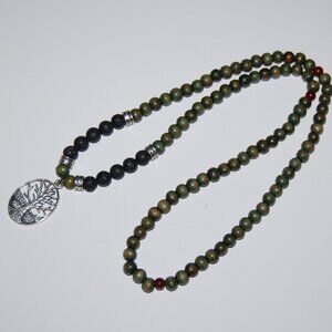 Wood Necklace,Tree of Life Necklace,Wooden Green Necklace,30 inches long