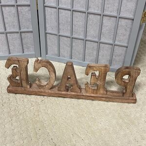 Wood Peace Sign for Home Decor, 20” x 6” x 2”.