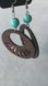 Wood Round Geometric Earrings with Turquoise Stone ~ Brand New!
