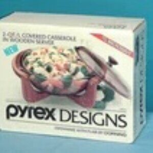 Vintage wood base for 2 quart Pyrex 024 casserole dishes, made in Corning NY by Corning Glassworks, the company that made Pyrex
