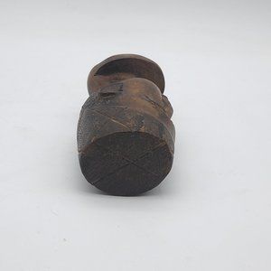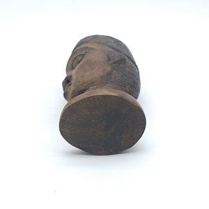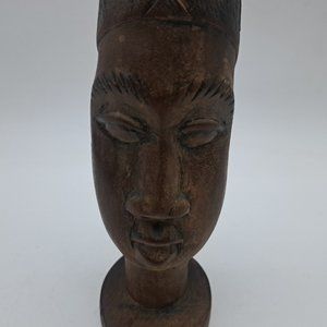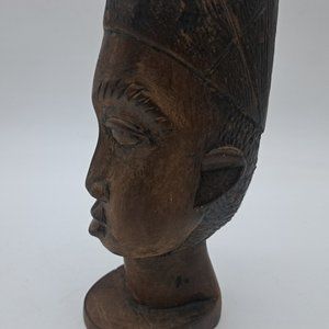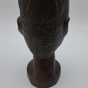 This is a bust of an African man's head above his shoulders. It is hand carved and is probably Kenyan in origin due to the headgear which is common in East Africa.