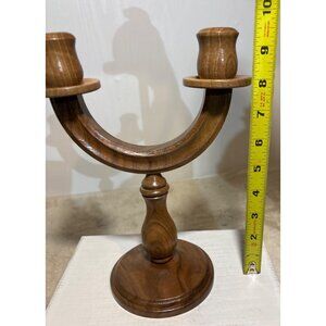 Wooden Double Candle Stick Holder Handcrafted Vintage 9.5” Rustic Decor