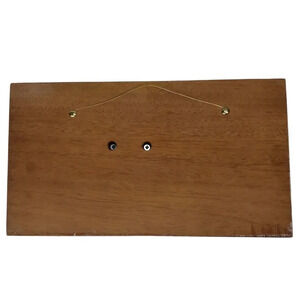Wooden decorative wall plaque with half elephant. Faux ivory tusk. Elephant may be hand carved/turned. Light stain colour; can see natural wood grain. Wood looks like oak.