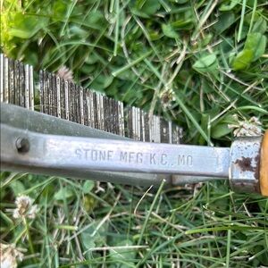 Efficient grooming rake with a sturdy wooden handle. Ideal for maintaining a neat appearance.