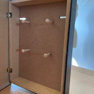 - Black exterior, natural interior, colourful laminated door (yellow, red, orange and green).