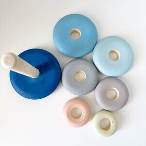 This wooden natural stacking toy was purchased on Etsy by a European store that is no longer active. Sturdy and a beautiful colour.
