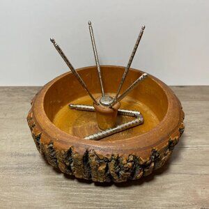 Wooden Nut Bowl with Cracker and Picks Christmas Xmas Party Serving