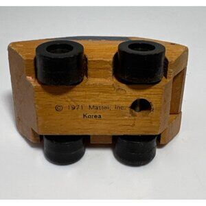 This vintage wooden toy car, crafted by Mattel in 1971, showcases classic design and nostalgic charm. Made in Korea, it offers collectors a piece of toy history, featuring a simple yet robust structure. The wooden build, combined with black wheels, makes it both a collectible and a timeless plaything.