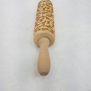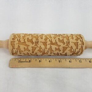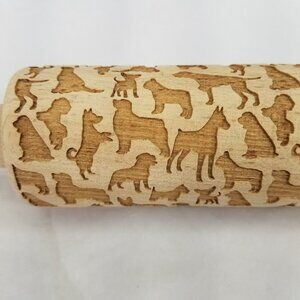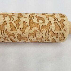 Wooden Rolling Pin Dog Motif Laser Etched Beautiful Baking Springerle Cookie