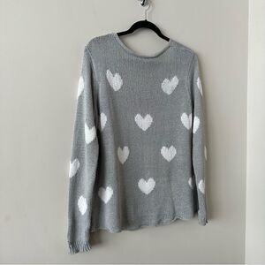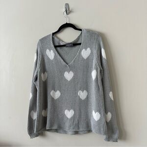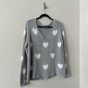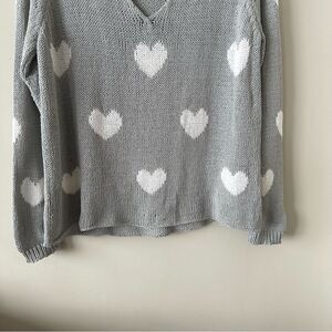 Flattering, relaxed fit top made with our soft, ropey and breathable cotton blend yarn. Little hearts are knit throughout the body and sleeve. Feminine v-neck and with light ribbing on cuffs.