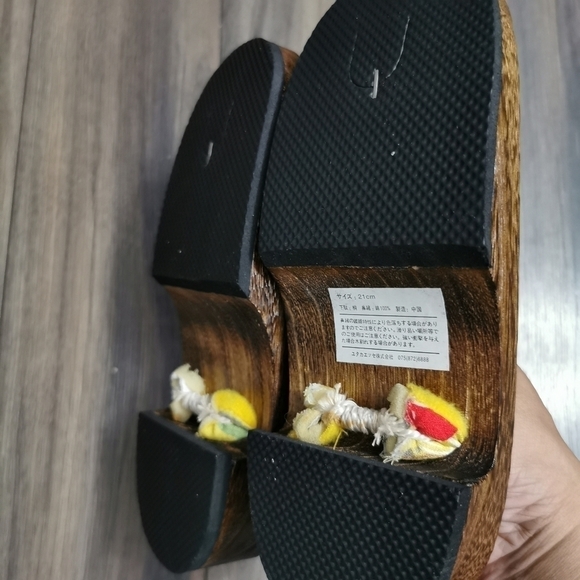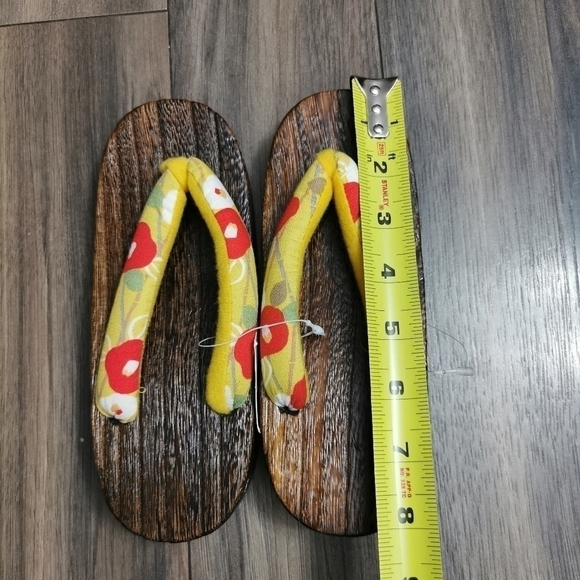 New with tag. Size 21 cm as per tag. Approximate measurements added in photos. Wooden sole and soft padded tongs. Base are rubber. Fits about size 11 toddler.