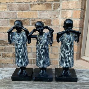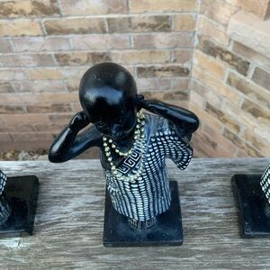 Wooden Symbolic Cultural Figurines Statues Black White Decorative 9” X 3