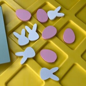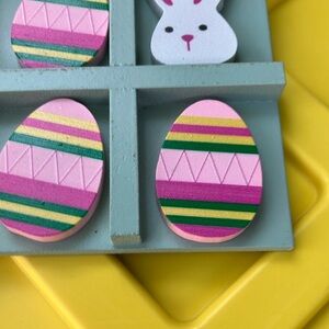 AI description: Fun Easter-themed tic-tac-toe game. Features bunny and egg pieces in pink, green, and white. Perfect for holiday play.