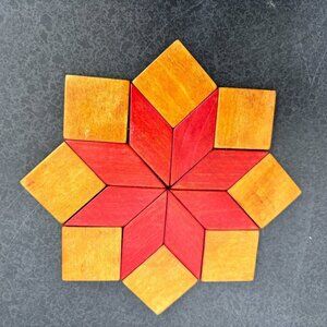 Wooden Trivets Hot Pads Retro Stretchy Star/Square Colorful VTG Set of 3 MCM