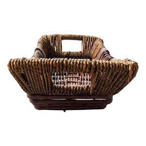 Wooden Wicker Straw Wrapped Rectangular Basket