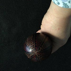 It is a nice wooden musical shaker, 11.5cm x 5cm x 5cm in dimensions, and in good pre-owned condition. Please check the pictures.
