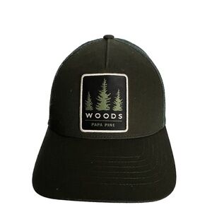 Woods Snap Back Cap Trucker Hat Dark Green 3 Trees Adult Unisex 100% Cotton