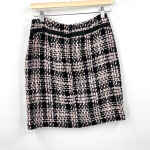 Brand: Ann Taylor, tweed mini skirt, wool blend, lined, little ribbon bow detail. Good pre-owned condition.