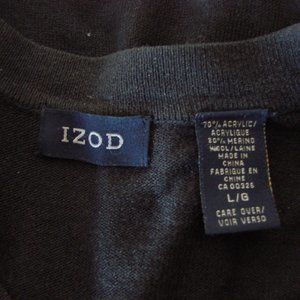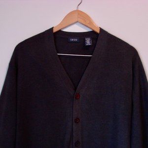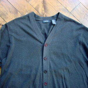 Izod Mens Dark Gray Black Button Front Cardigan Sweater Wool Blend ~ Size Large ~ 70% Acrylic, 30% Wool