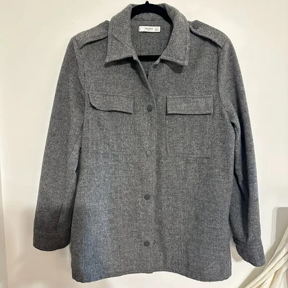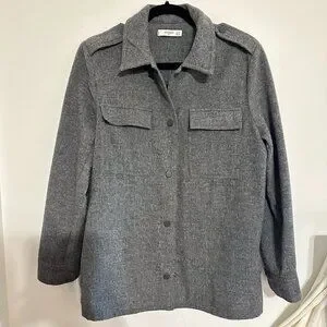 snap button closure shacket, wool blend, midweight, relaxed fit.