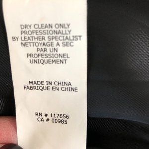 A unique twist on the bomber jacket where the front is long (hip length) and the back is cropped (waist length). Wool blend boucle fabric and soft supple leather makes up the body and sleeves. Rib knit is used for the collar, cuffs and waistband. Jacket is lined and has front zipper closure.