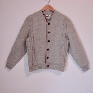 Wool Cable Knit Gray Cardigan Button Front Mens Munchner Strickmoden ~ Size 50 or Large ~ 100% Pure New Wool