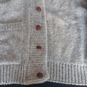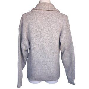 Wool Cardigan Button Up Sweater SZ L Grey & Tan Heavy Weight Shawl Collar Men's