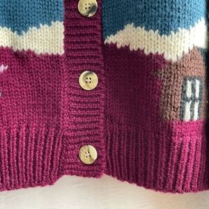 Wool Cardigan The Lady’s A Champ 80’s Landscape Knit Button Front Vintage XL