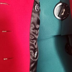 Wool Cashmere blend. Fully lined. Double breasted. Two hand pockets. Red, size 10 petite, in great preowned condition.