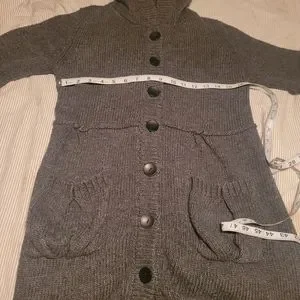 Grey wool coat, excellent used condition! I bought this used but have never worn it as the sleeves are too short on me. Super comfy and warm. Big pockets.
