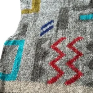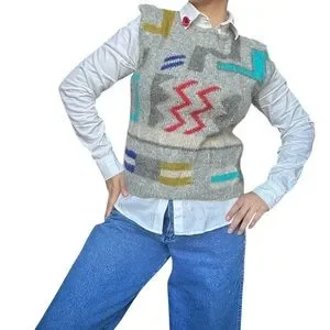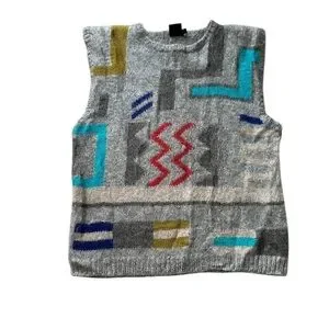 I call this vest the Picasso piece — it’s colorful with a geometric pattern.