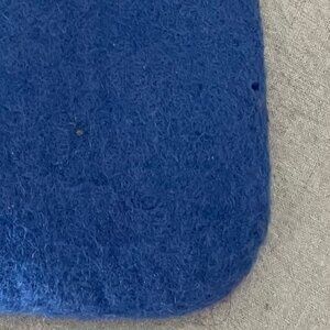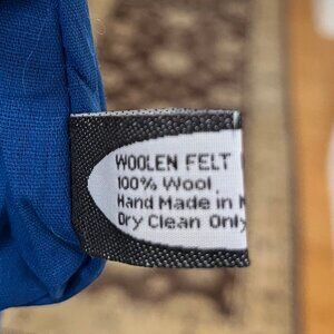Exterior is felted wool, with tip zip closure and mini pom pom pull tab.
