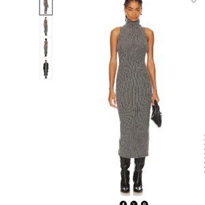 Wool Dark Gray Sweater Dress Turtleneck Sleeveless Ribbed Fine Merino Wool Small