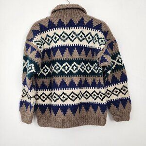 Wool Knit Collard Siwash Handmade in Ecuador Geometric Pattern Beige Teal Blue