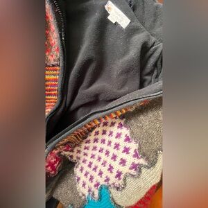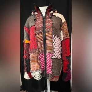 This heavy multi colour patchwork wool coat is in excellent condition. From my personal collection this piece is hard to let go. She no longer hugs me the way she should. We let go a couple of years ago but I’ve get her around despite her unhappiness,